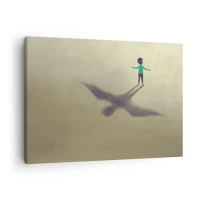 Canvas picture - A symbolic figure of a child with the shadow of a bird against a background in warm shades. - 70x50cm - Hero of the Future - Modern wall decoration for the living room and bedroom ARTTOR