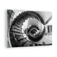 Glass picture - Black and white photo of a spiral staircase in perspective - 70x50cm - Up and Upwards - Modern wall decoration for the living room and bedroom ARTTOR