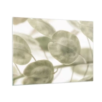 Glass picture - Close-up of leaves in soft pastel shades of green - 70x50cm - In the Beginning There Were Leaves… - Modern wall decoration for the living room and bedroom ARTTOR