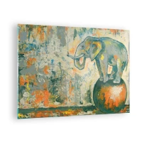 Glass picture - Abstract elephant balancing on a ball - 70x50cm - Long Live the Circus! - Modern wall decoration for the living room and bedroom ARTTOR