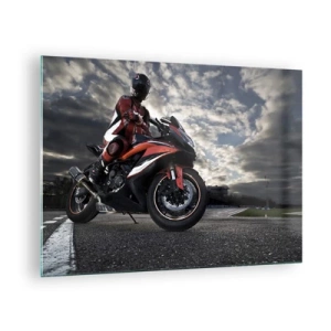 Glass picture - A motorcyclist on a race track under a stormy sky - 70x50cm - Dark Rider - Modern wall decoration for the living room and bedroom ARTTOR