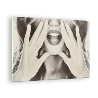 Glass picture - A woman with lipstick on her lips and her hands to her face - 70x50cm - Coming! - Modern wall decoration for the living room and bedroom ARTTOR