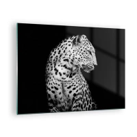 Glass picture - A leopard in black and white light against a window - 70x50cm - A Perfect Right Profile - Modern wall decoration for the living room and bedroom ARTTOR
