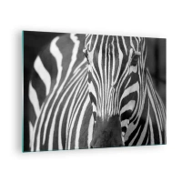 Glass picture - Black and white portrait of a zebra with visible stripes - 70x50cm - World Is Black and White - Modern wall decoration for the living room and bedroom ARTTOR