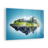 Glass picture - A floating island with mountains, a waterfall, and greenery - 70x50cm - Fantastic Island - Modern wall decoration for the living room and bedroom ARTTOR