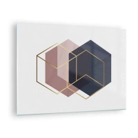 Glass picture - Golden outlines of cubes against a background of navy blue and pink solids - 70x50cm - Power of Simplicity - Modern wall decoration for the living room and bedroom ARTTOR