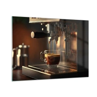 Glass picture - Close-up of a cup of coffee being poured from a pressure coffee maker - 70x50cm - Good Moment of the Day - Modern wall decoration for the living room and bedroom ARTTOR