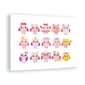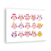 Glass picture - Colorful owls in various patterns on a white background - 70x50cm - One Is Sweeter than the Next - Modern wall decoration for the living room and bedroom ARTTOR
