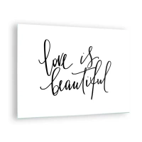 Glass picture - The quote 'love is beautiful' in an elegant, handwritten style on a white background - 70x50cm - Read and Repeat - Modern wall decoration for the living room and bedroom ARTTOR