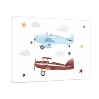 Glass picture - Two colorful airplanes among the stars and clouds - 70x50cm - Mr Pilot We Are Waiting! - Modern wall decoration for the living room and bedroom ARTTOR