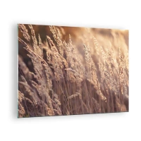 Glass picture - Golden grasses illuminated by the rays of the setting sun - 70x50cm - Ready to Welcome Autumn - Modern wall decoration for the living room and bedroom ARTTOR