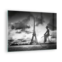 Glass picture - Eiffel Tower with Retro Bicycle in Black and White - 70x50cm - Longing for Belle Epoque - Modern wall decoration for the living room and bedroom ARTTOR