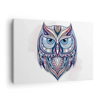 Canvas picture - Geometric owl in shades of blue and beige - 70x50cm - Ornamental Owl - Modern wall decoration for the living room and bedroom ARTTOR