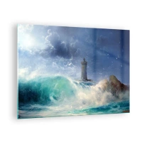 Glass picture - A lighthouse among the rough ocean waves - 70x50cm - Standing Guard against the Elements - Modern wall decoration for the living room and bedroom ARTTOR