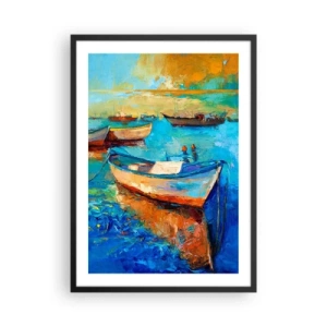 Poster in black frame - Colorful boats on the water in an impressionist style - 50x70cm - In a Southern Bay - Modern wall decoration for the living room and bedroom ARTTOR