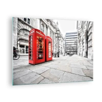 Glass picture - Red telephone booths against the backdrop of a city street - 70x50cm - Welcome to London - Modern wall decoration for the living room and bedroom ARTTOR