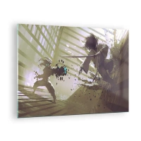 Glass picture - Samurai duel in a dynamic scene - 70x50cm - You Too Can Be a Samurai - Modern wall decoration for the living room and bedroom ARTTOR