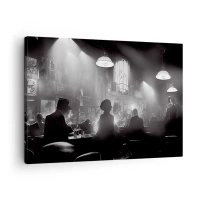 Canvas picture - Black and white jazz nightclub scene - 70x50cm - In Jazz Ambiance - Modern wall decoration for the living room and bedroom ARTTOR