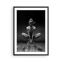 Poster in black frame - A black and white photograph of a ballerina in an artistic pose. - 50x70cm - Concentration of Dancing Energy - Modern wall decoration for the living room and bedroom ARTTOR