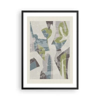 Poster in black frame - Abstract figures in shades of green and blue - 50x70cm - Composition with Window Pane - Modern wall decoration for the living room and bedroom ARTTOR