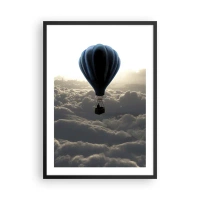 Poster in black frame - A black balloon floating above the clouds - 50x70cm - Wanderer above Clouds - Modern wall decoration for the living room and bedroom ARTTOR