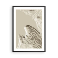 Poster in black frame - Layered waves in shades of beige and brown - 50x70cm - Topography of Art. - Modern wall decoration for the living room and bedroom ARTTOR