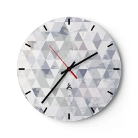 Wall clock - Clock on glass - Geometric pattern with gray triangles in a modern style - 30x30cm - In the Rhythm of a Triangle - Modern wall decoration for the living room, kitchen, and bedroom ARTTOR