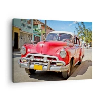 Canvas picture - A red classic car parked on the street on a sunny day - 70x50cm - Only in Cuba - Modern wall decoration for the living room and bedroom ARTTOR