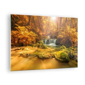 Glass picture - Forest cascade in gold - 70x50cm - Forest Cascade in Gold - Modern wall decoration for the living room and bedroom ARTTOR