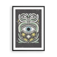 Poster in black frame - A symbolic eye surrounded by plant patterns on a dark background. - 50x70cm - Tribal Rituals - Modern wall decoration for the living room and bedroom ARTTOR