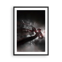 Poster in black frame - The strong silhouette of the saxophonist in a jazz atmosphere - 50x70cm - Lost in the Fog of Jazz - Modern wall decoration for the living room and bedroom ARTTOR