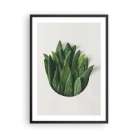 Poster in black frame - Close-up of large green leaves showing structure and texture. - 50x70cm - Turned towards Light - Modern wall decoration for the living room and bedroom ARTTOR