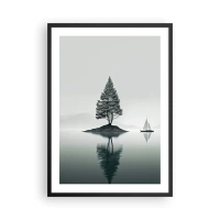 Poster in black frame - A lonely tree on an island with a reflection in the water - 50x70cm - Daydreaming - Modern wall decoration for the living room and bedroom ARTTOR