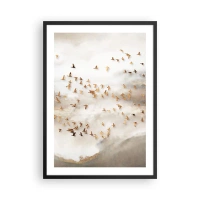 Poster in black frame - A flock of birds floating among the misty clouds - 50x70cm - It Is Time - Modern wall decoration for the living room and bedroom ARTTOR
