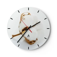 Wall clock - Clock on glass - A natural cotton branch on a white background - 30x30cm - Soft By Nature - Modern wall decoration for the living room, kitchen, and bedroom ARTTOR