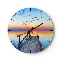Wall clock - Clock on glass - Picturesque pier at sunset - 30x30cm - Authentic, Not a Tourist Trap - Modern wall decoration for the living room, kitchen, and bedroom ARTTOR