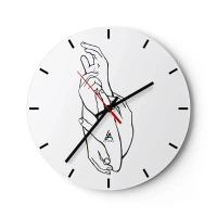 Wall clock - Clock on glass - A delicate sketch of two clasped hands on a white background - 30x30cm - Good Touch - Modern wall decoration for the living room, kitchen, and bedroom ARTTOR