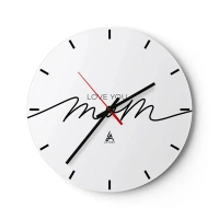 Wall clock - Clock on glass - The inscription Love You Mom on a white background in an elegant style - 30x30cm - Great Emotion - Modern wall decoration for the living room, kitchen, and bedroom ARTTOR