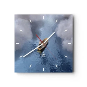 Wall clock - Clock on glass - Poetic Composition of Blue and Grey - 30x30 cm
