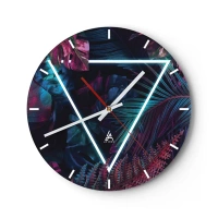 Wall clock - Clock on glass - Tropical Leaves and Ferns with Neon Triangle - 30x30cm - Disco Style Garden - Modern wall decoration for the living room, kitchen, and bedroom ARTTOR