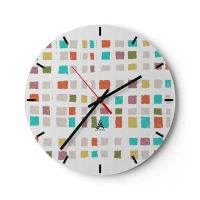 Wall clock - Clock on glass - Colorful squares on a white background in an abstract style - 30x30cm - Unknown Game - Modern wall decoration for the living room, kitchen, and bedroom ARTTOR