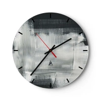 Wall clock - Clock on glass - Abstract pattern in shades of black and white - 30x30cm - Woven from the Vertical and the Horizontal - Modern wall decoration for the living room, kitchen, and bedroom ARTTOR