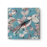 Wall clock - Clock on glass - Storm of Feathers - 30x30 cm