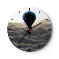 Wall clock - Clock on glass - A hot air balloon soars above the clouds at sunrise. - 30x30cm - Wanderer above Clouds - Modern wall decoration for the living room, kitchen, and bedroom ARTTOR