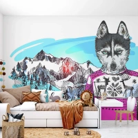 Self-Adhesive Photo Wallpaper Deluxe Sticker - Wolf in Sheep's Skin - Abstraction, Wolf, For children - 100x70 cm