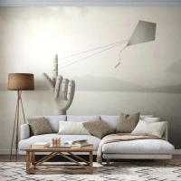 Photo Wallpaper Premium Sand - Test of Strengths - Abstraction, Hand, Kite - 100x70 cm