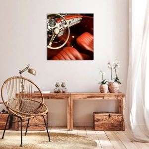 - This painting depicts the interior of a classic car with red leather seats. An elegant decoration for lovers of cars and retro style.
