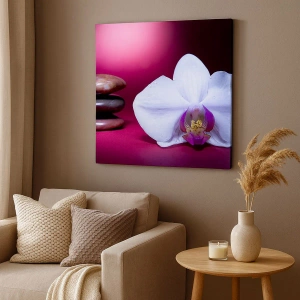 Wall art - A Study of Freshness in Purple - White Orchid and Stones on a Pink Background