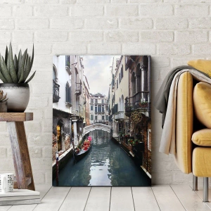 Canvas picture - Venetian View with a Gondola and a Bridge - 160x50 cm