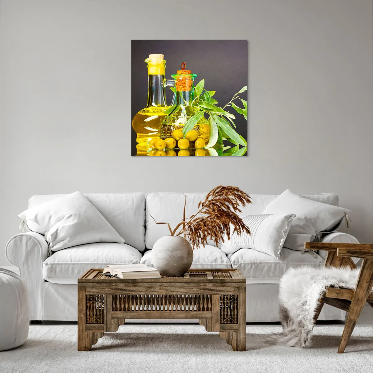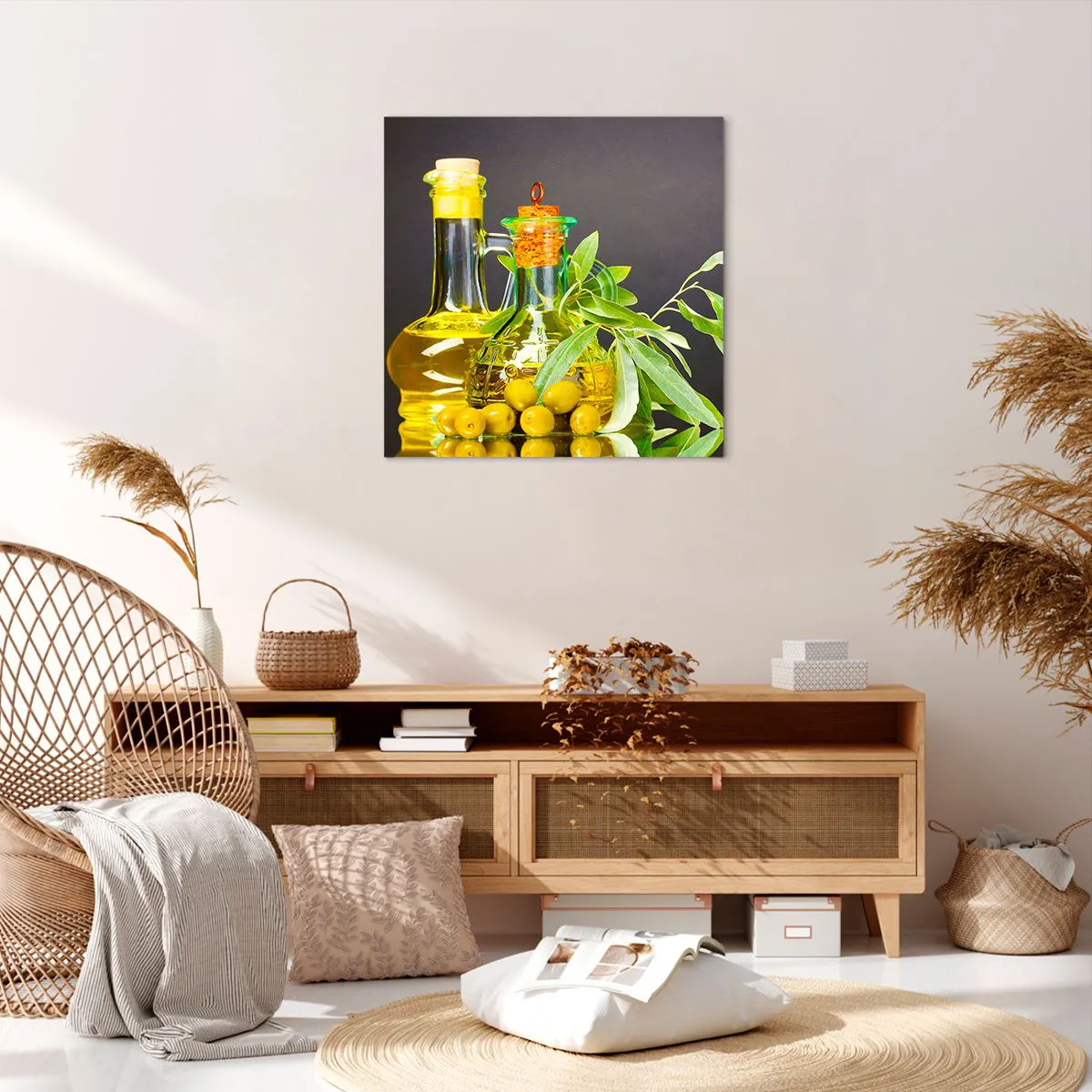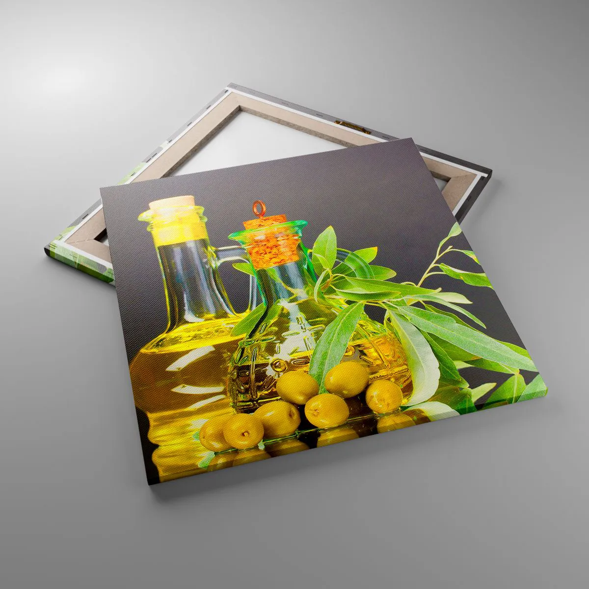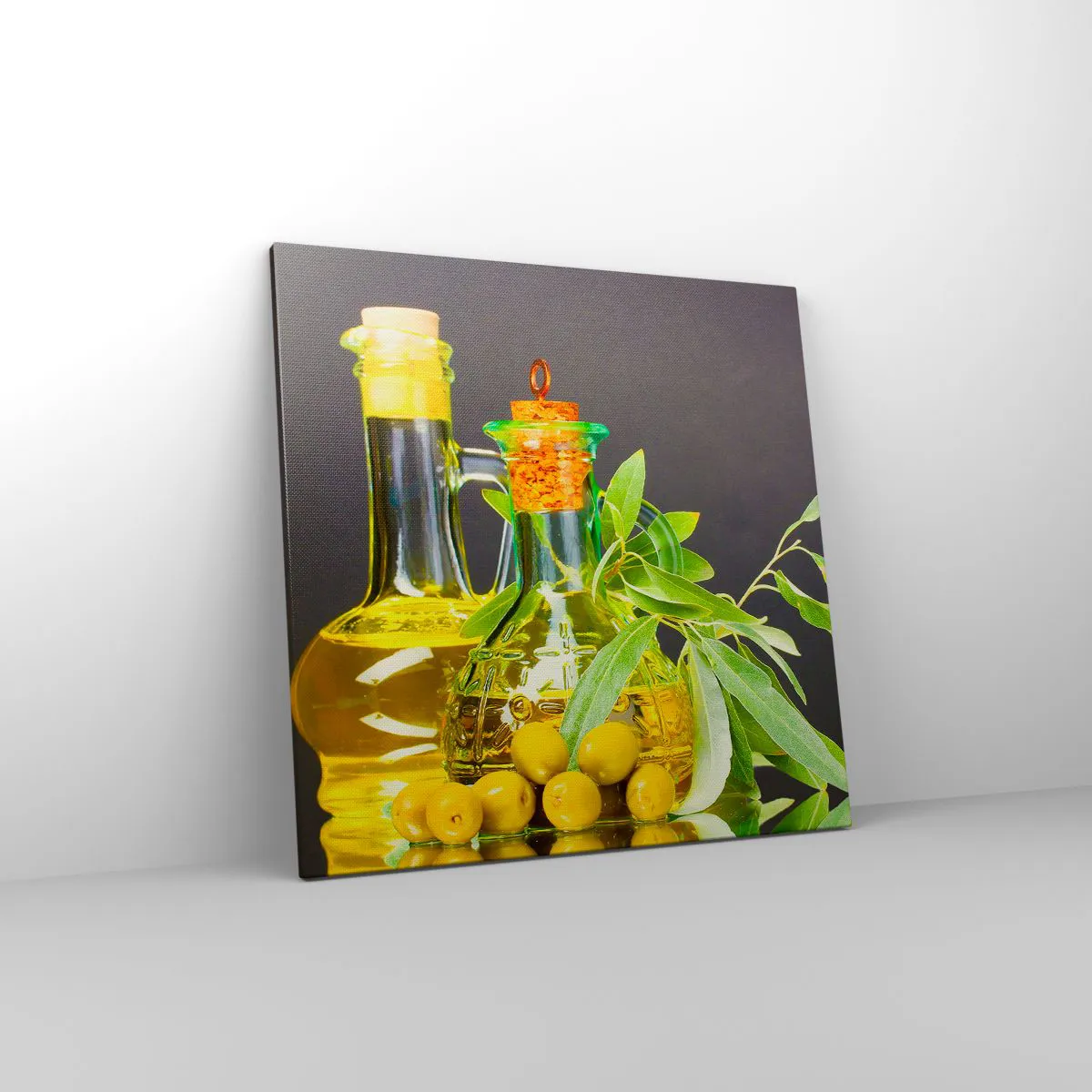 Canvas picture - Still Life with Olives and Olive Oil - 60x60 cm